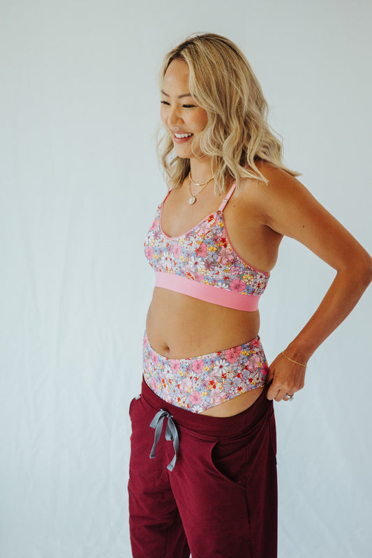 Pink Flora Print Bra and Underwear Bundle