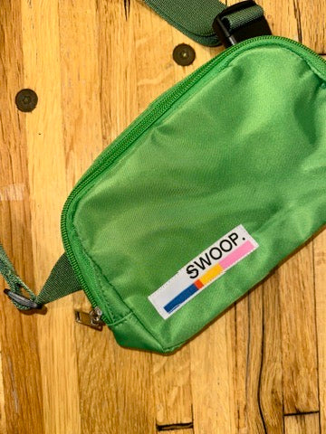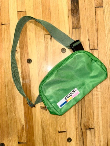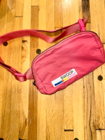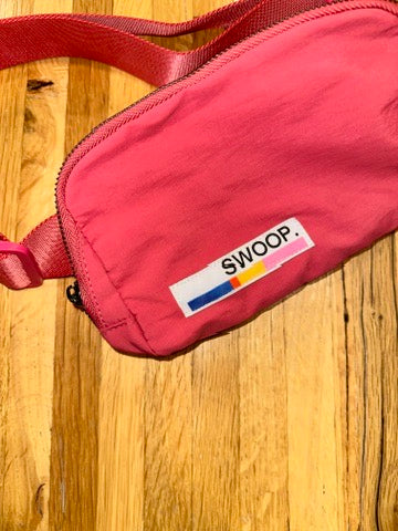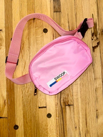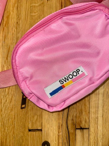 Keep Phone, keys, wallet close in this versatile belt bag. Featuring a top zip closure, an adjustable fit, a front buckle fastening, a back zip compartment and a main internal compartment. Perfect size for on the move with water-resistant nylon fabric. With the colorful SWOOP. label, how can you go wrong!?